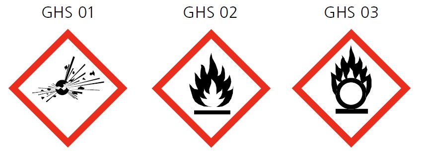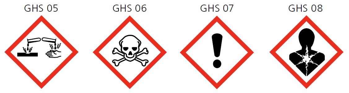 Ebenfalls dazu gehören Arbeiten mit Stoffen und Zubereitungen, die gemäss den H-Sätzen (H für engl. Hazard = Gefahr) als toxisch, sensibilisierend, krebserzeugend, erbgutverändernd, reproduktionstoxisch oder fruchtschädigend eingestuft und/oder mit den untenstehenden Gefahrensymbolen gekennzeichnet sind.